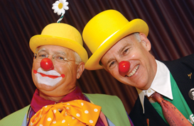 John Bairdry and Doug Hale, a.k.a. Pockets and Bow Tie, bring healing humor to children. |